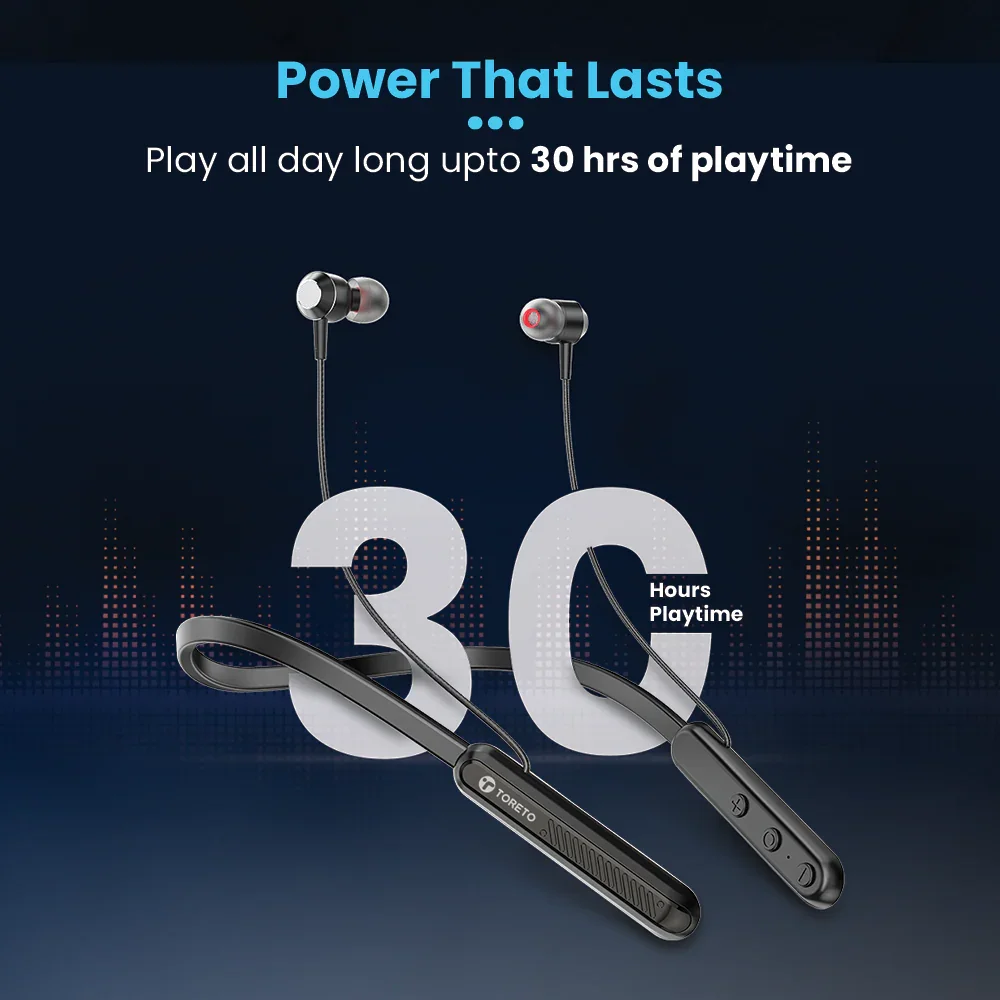 Wireless earphones with 30- hours Playtime, 200mAh battery, Type-C Charging, BT v5.3