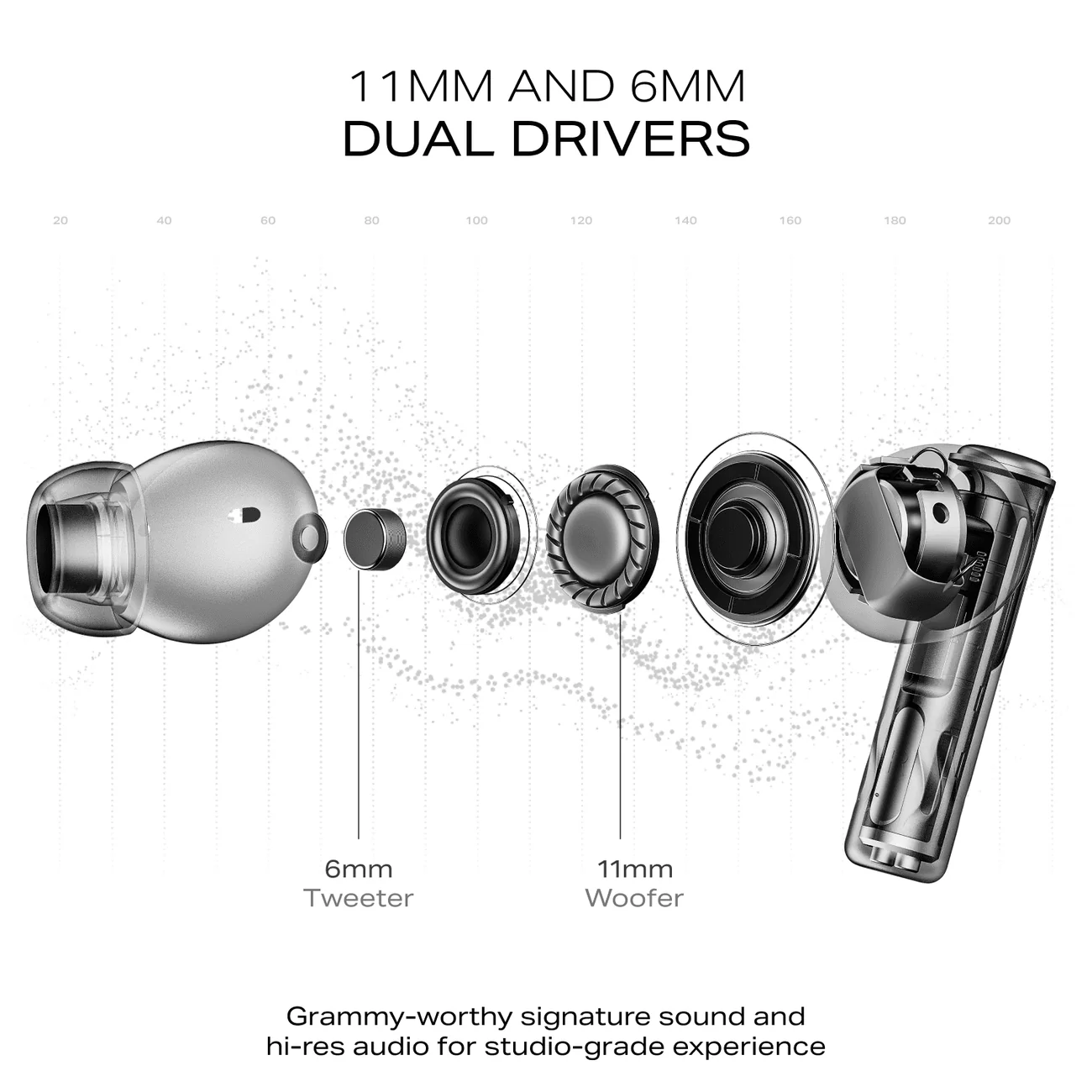 Dolby Head Tracking: Feel your audio move with you. With Dolby Head Tracking, Nirvana Ivy Pro delivers a dynamic spatial sound experience that shifts based on your head movements — making movies, music, and games more immersive and real than ever before. Adaptive Hybrid ANC (Up to 52dB): Block out the chaos. The Ivy Pro comes with cutting-edge Adaptive Hybrid Active Noise Cancellation that cancels out noise up to 52dB. Whether you’re in a café, on a flight, or commuting, it adjusts in real time to keep distractions at bay. Dual Dynamic Drivers (11mm + 6mm): Designed for balanced sound, the dual-driver setup combines an 11mm woofer and a 6mm tweeter to deliver powerful bass and detailed highs, ensuring a balanced, rich, and dynamic audio experience across genres. 24-bit Audio – Crystal Clear Sound: Step into studio-grade sound. With 24-bit depth audio playback, Ivy Pro brings out the finest audio nuances, ensuring crisp vocals, clean instruments, and deeper emotional connections to every track. Preset EQs & Adaptive EQ powered by Mimi: Fine-tune your sound your way. Choose from curated preset EQs based on your mood or genre. Or let boAt Adaptive EQ powered by Mimi customize your audio in real time by analyzing your hearing profile for a truly personalized listening experience. 6 Mics with AI-ENx™ Technology: Enjoy clear conversations, anywhere. With six strategically placed microphones and advanced AI-ENx™ environmental noise cancellation, your voice is isolated from ambient noise, ensuring clarity on every call. BEAST™ Mode – 50ms Low Latency: Activate BEAST™ Mode for low latency gaming and streaming. Sync audio with visuals perfectly — no lag, just smooth, real-time response. boAt Hearables App Support: Your control center. Use the boAt Hearables app to adjust ANC levels, switch EQ modes, activate BEAST™ mode, and more — all from your smartphone. IPX5 Sweat & Splash Resistance: Built for your active lifestyle. Whether you’re sweating it out at the gym or caught in light rain, Ivy Pro keeps playing through it all. Google Fast Pair: Instantly connect to Android devices with a single tap. Fast, easy, and intuitive pairing right out of the case.