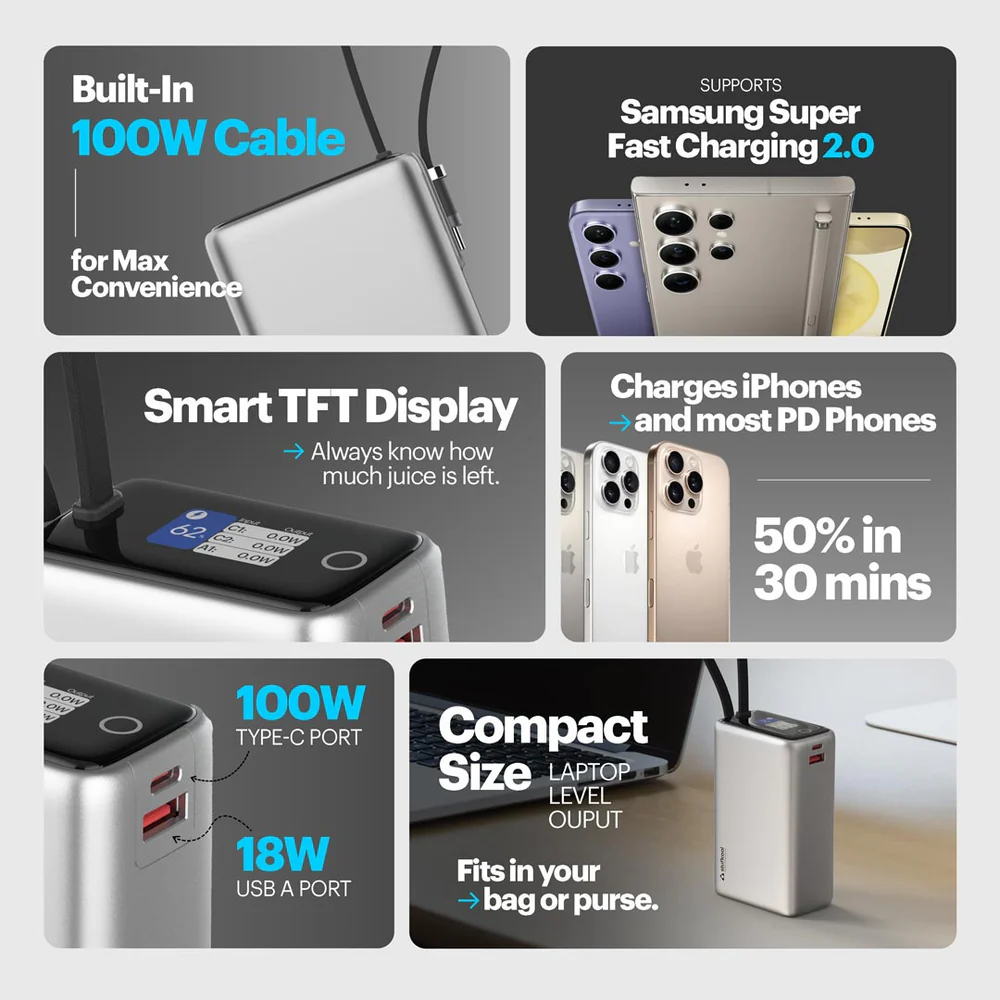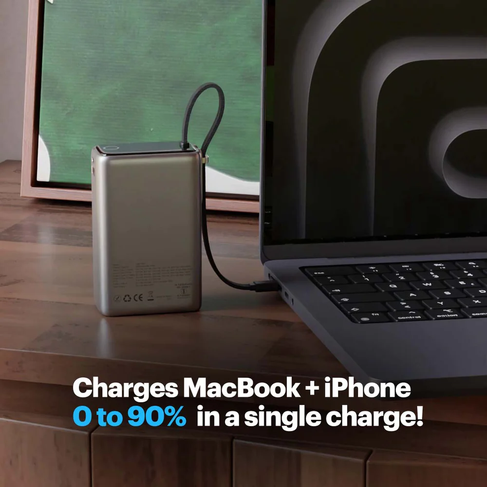 Giga Max smallest 25000mAh powerbank with 100W Built-in Type-C Cable