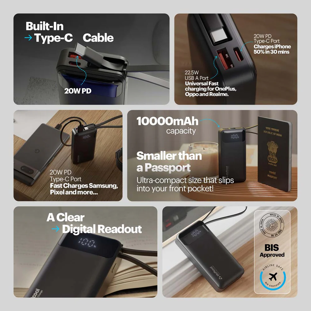 Mito Mini 10000mAh Powerbank with Built-in Type-C Cable and 22.5W Fast Charging