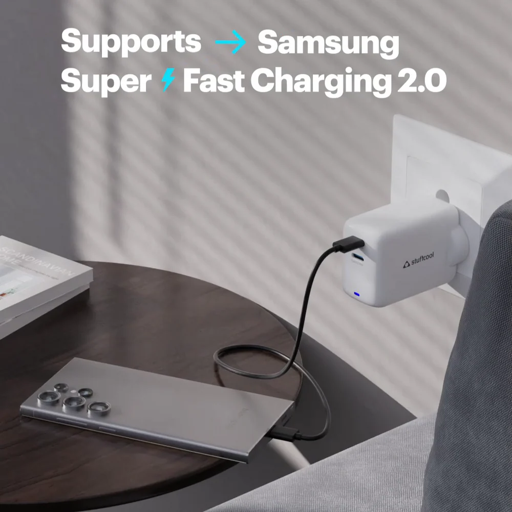 GaN (Gallium Nitride) is a semiconductor material that allows for smaller, more efficient power conversion in electronic devices. It can handle higher voltages and frequencies, resulting in faster charging times from smaller compact sizes.