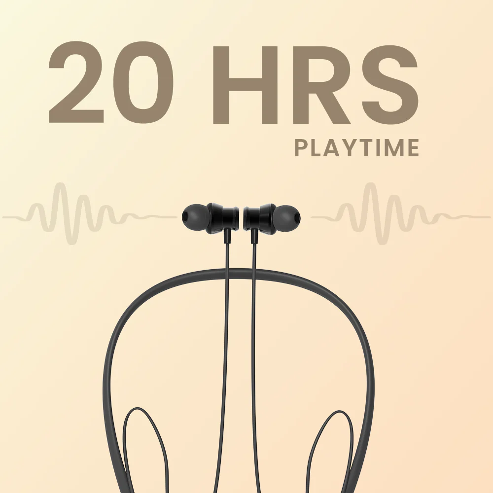 Magnetic wireless neckband with 20-hour playtime, dual pairing, metallic hall-sensor design, in-built mic